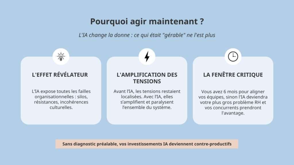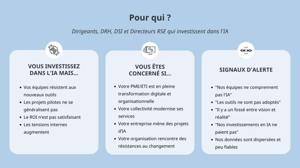 Après 20 ans d’entrepreneuriat, je détecte ce que les chiffres cachent : les micro-tensions, les non-dits et les résistances qui paralysent vos projets IA et votre organisation.